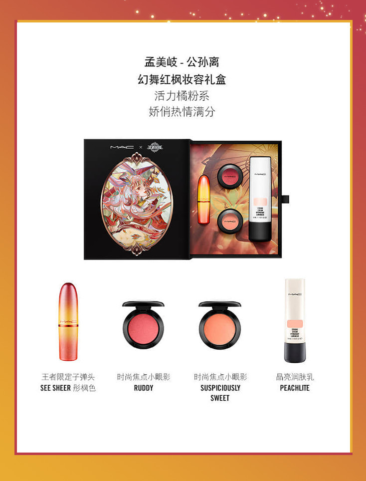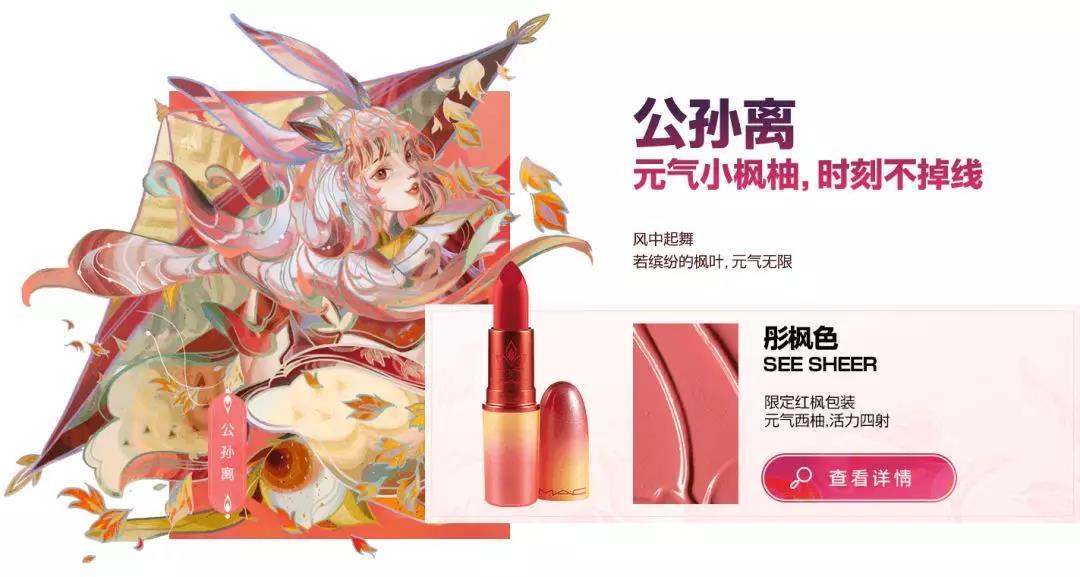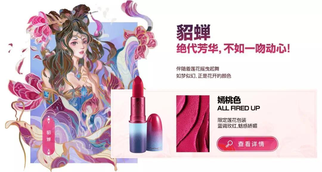 他们和M.A.C为峡谷中的女英雄貂蝉、公孙离、花木兰、露娜、大乔出了一批联名限量版的口红,口红的图片如下: