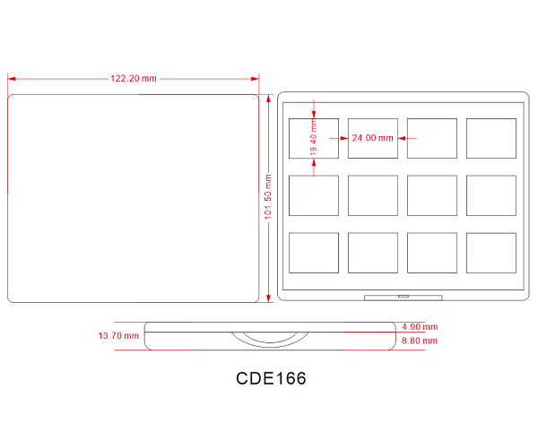 > 长方形12格带镜眼影盒